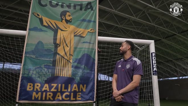 虽然6250万英镑转会以来只有1个进球,但他在阿莫林的343阵型中有关键作用,经常负责持球策应,有助队友姆贝莫发挥进球作用。曼联球迷最近为他在西看台准备了一张海报,上面是他模仿里约热内卢著名的基督像动作,并且用英语写着「巴西奇迹」。
