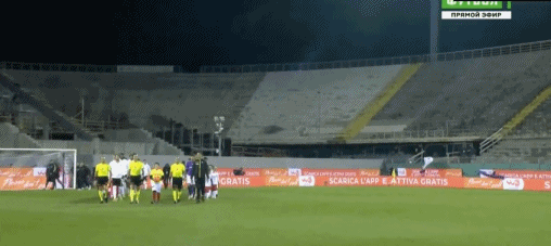 第19分钟,佛罗伦萨队长卢卡-拉涅利与看台球迷交涉,比赛暂停