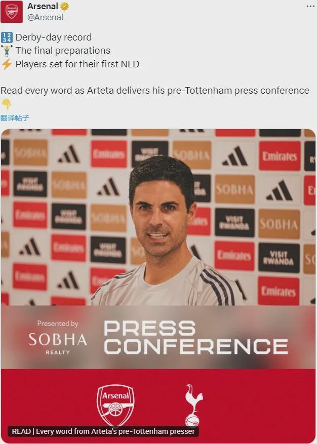 阿尔特塔出席了赛前新闻发布会,我们来看关键内容。